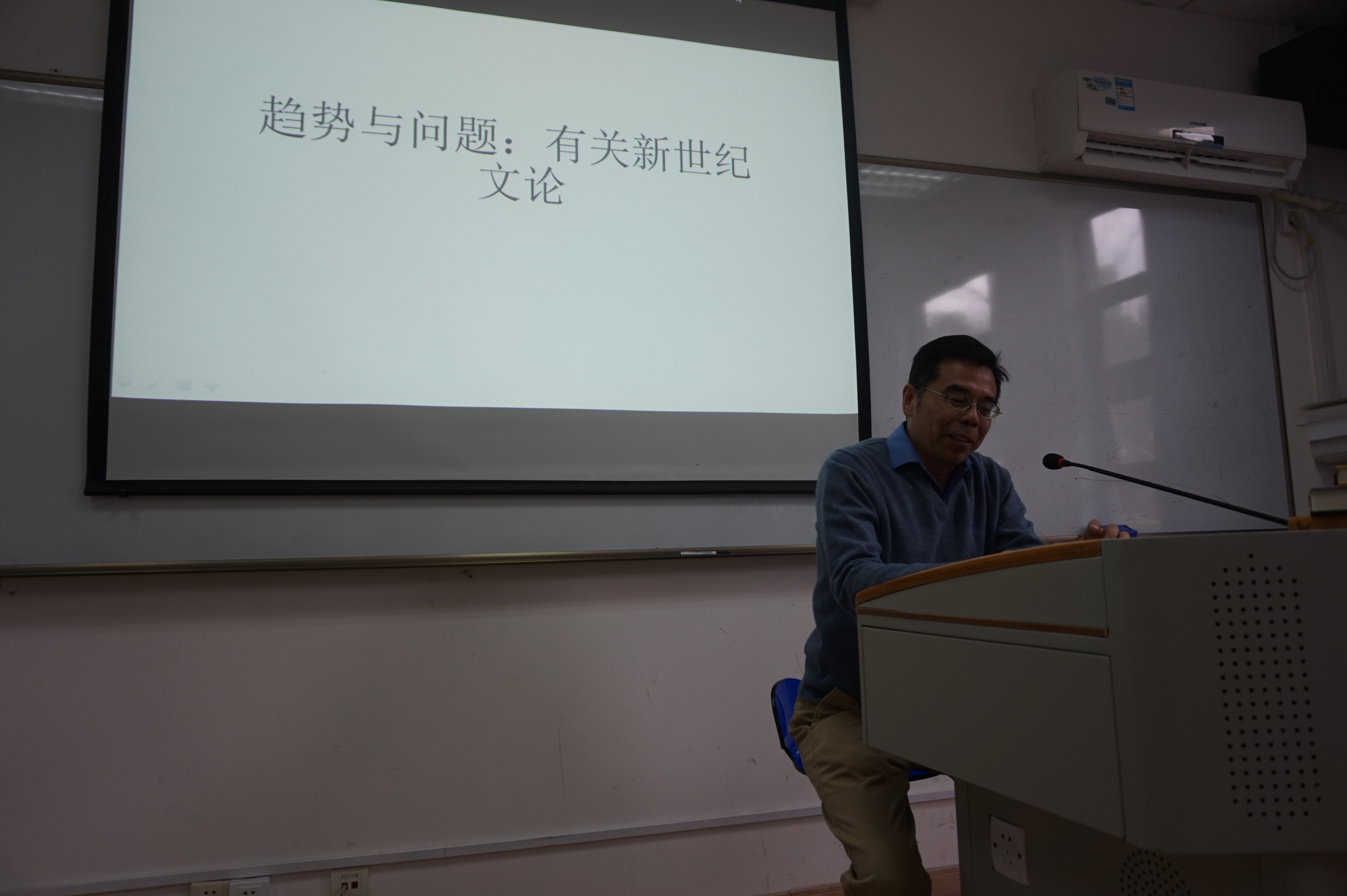 On March 23rd, Prof. Jin Hengshan was invited to give a lecture on western literature in the 21st century in Room 109.
