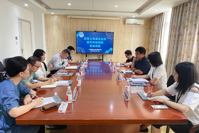 On September 27, Zhang Yan, Dean of the College of Foreign Languages, received Tang Jie, Director of Shanghai Asia-Pacific Typhoon Research Center (SATRC) and his delegation. The two sides carried out in-depth exchanges on the development of the college and the business of the Typhoon Research Center.