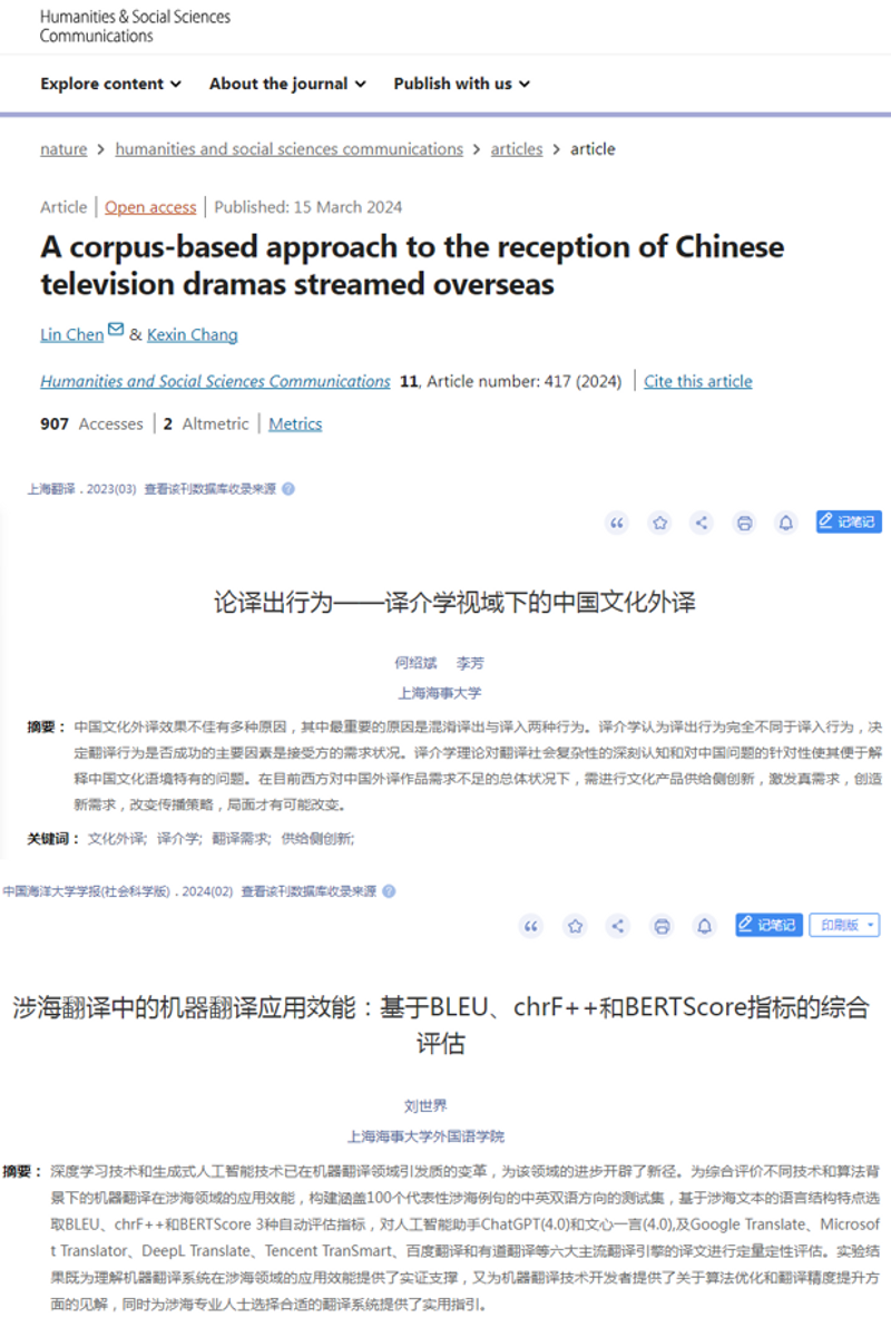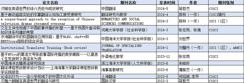 Shanghai Maritime University has a long history of translation theory and practice and is one of the earliest universities in China to train graduate students in translation. In recent years, focusing on the strategy of serving the country's maritime power, shipping power, and the development concept of the Shanghai International Shipping Center, the school has actively built a new era translation theory and practice training system. From 2023 to 2024, nearly 20 papers on translation theory have been published, including 2 in SSCI Region I journals and 6 in CSSCI journals. 1 translated works; Three provincial-level projects and five horizontal projects were added.